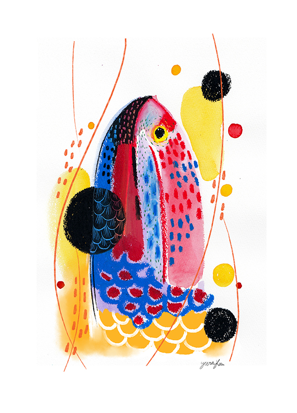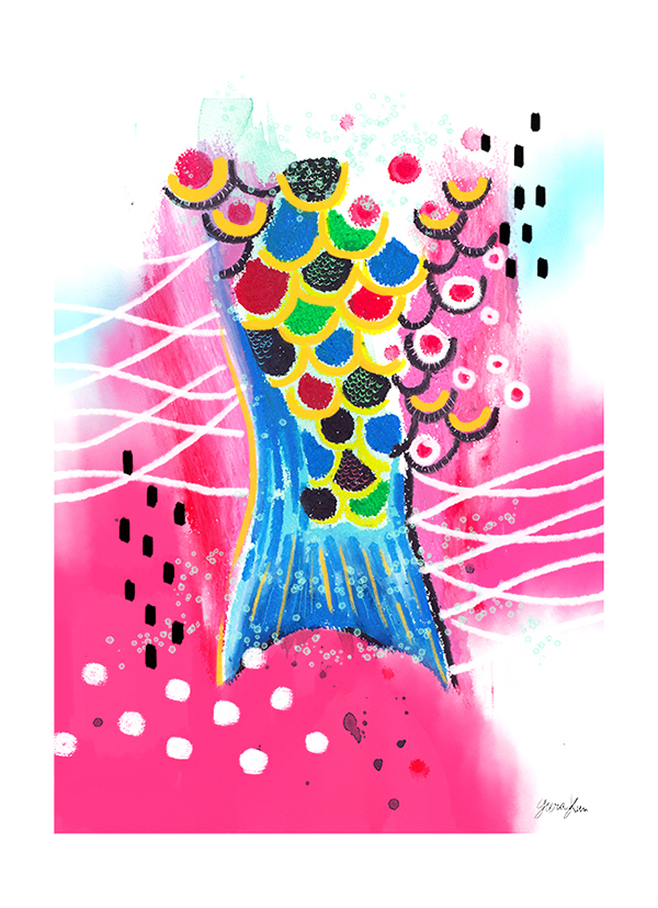 The grilled fish, which often appeared on the dinner table, seemed to stare at me every time. I don’t know if the fear of the fish was caused by the fear of those eyes. I was scared of fish, so I couldn’t even scuba dive or swim in the sea that I wanted to do for a long time. Then one day, thinking that I wanted to get out of this fear a little, I started drawing facing fear. To break the trauma, there is a saying to face fear and get used to it. I don’t know how many fish I did eye contact while doing this. By the time the fish got used to it little by little, beautiful patterns and colors began to appear, and I started to express them with pictures.