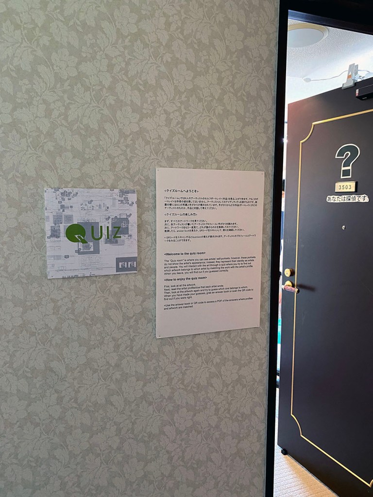 The “Quiz room” is where you can see artists’ self-portraits; however, these portraits do not show the artist’s appearance; instead, they represent their identity as artists and people.