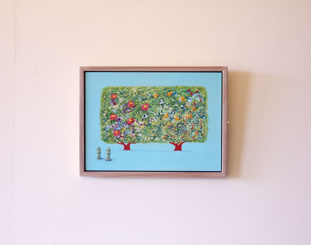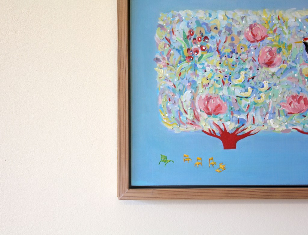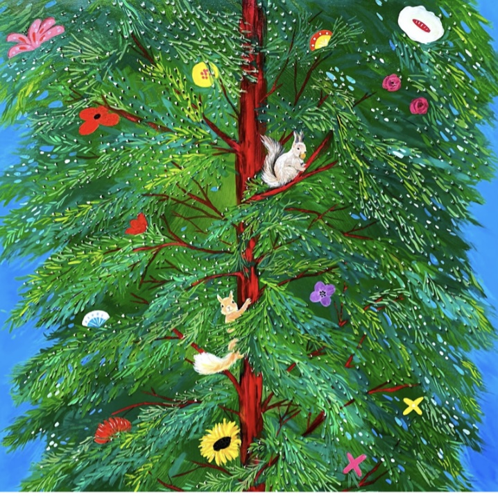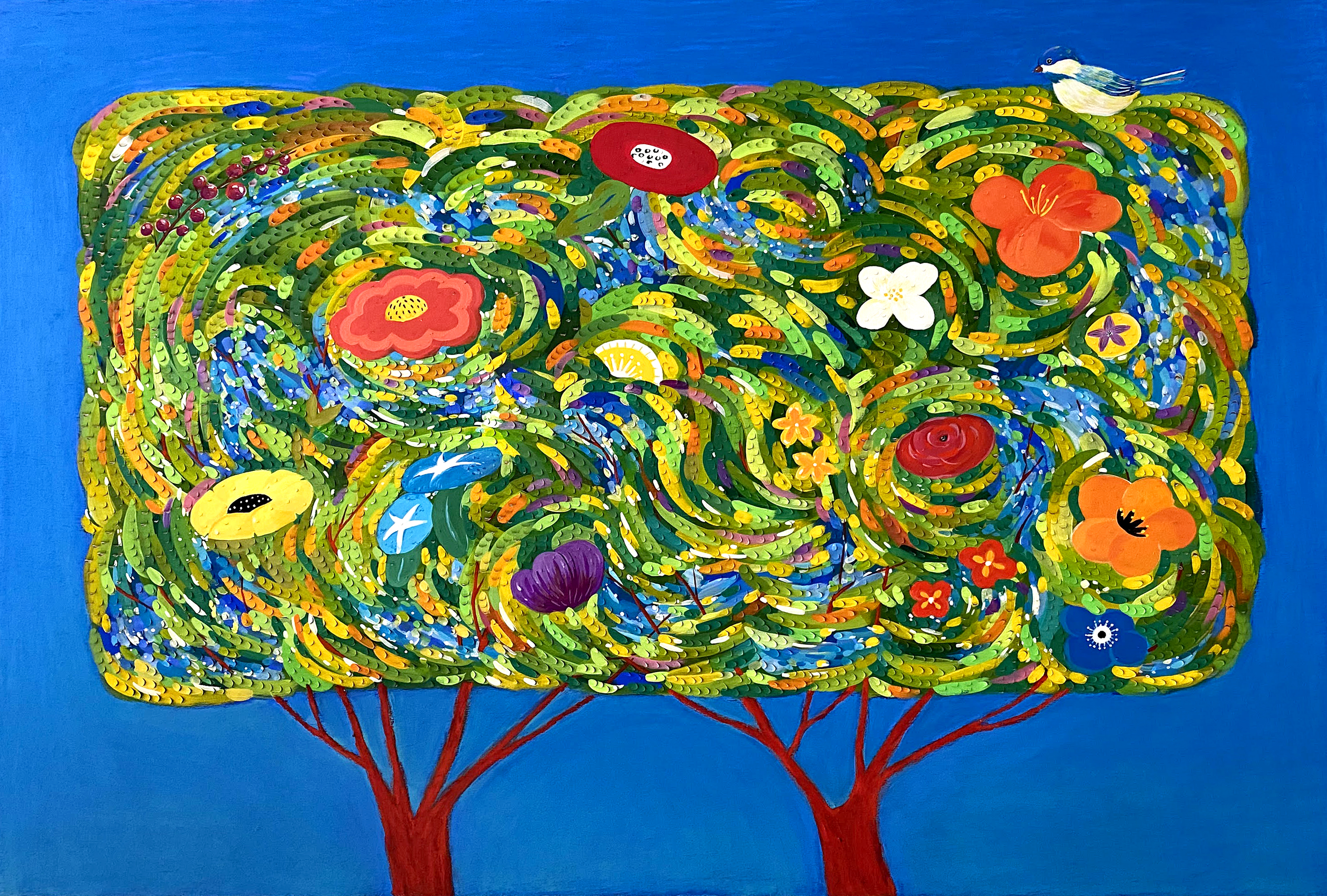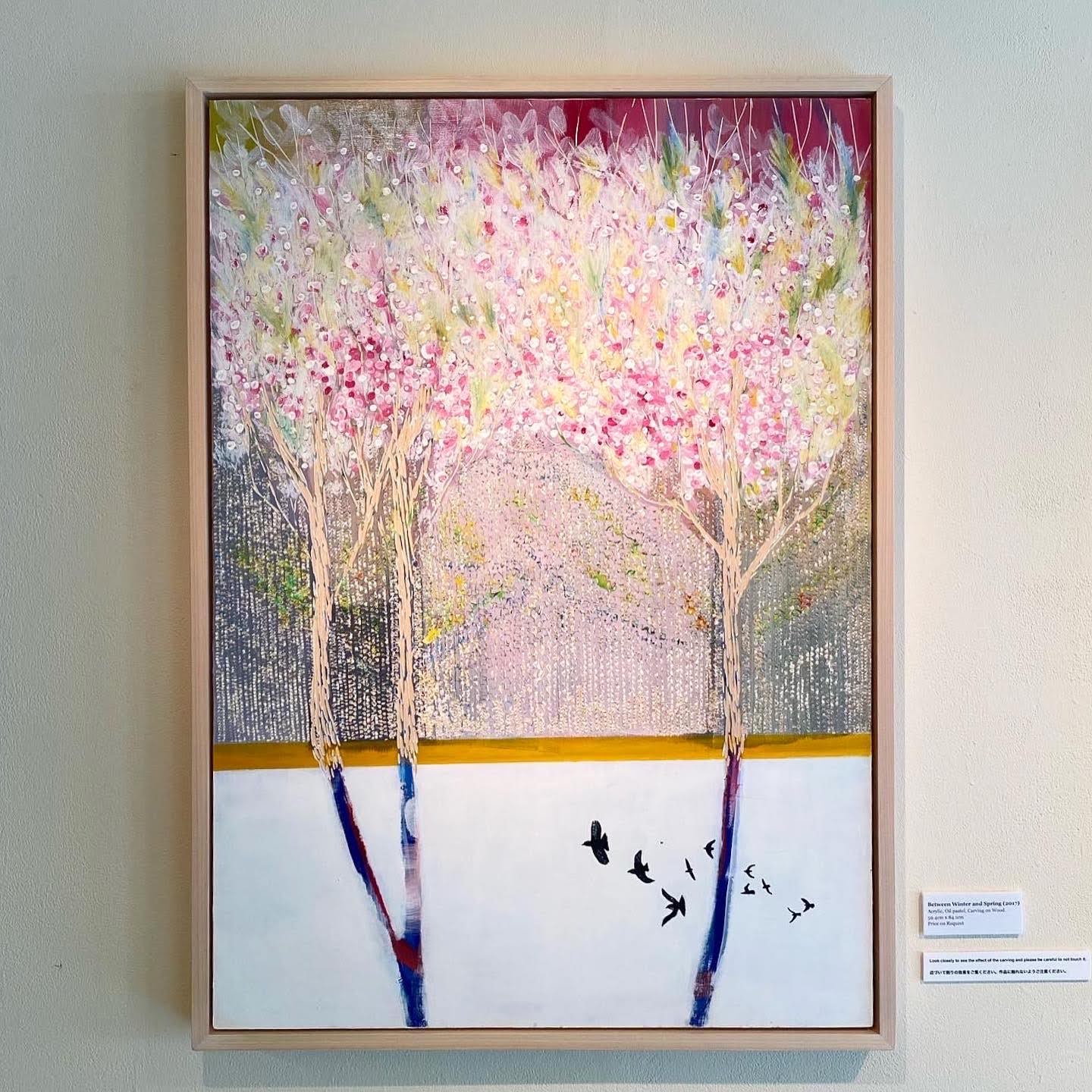 The “Tree Series” began shortly after my husband and I moved from the United States to Japan in 2016. While exploring our new home, I discovered a unique tree with two distinct trunks growing together to form a single canopy. This reminded me of how my husband and I, once separate individuals, intertwined our lives to become one. I later learned these trees are called “Yeonri Ji” (連理枝)