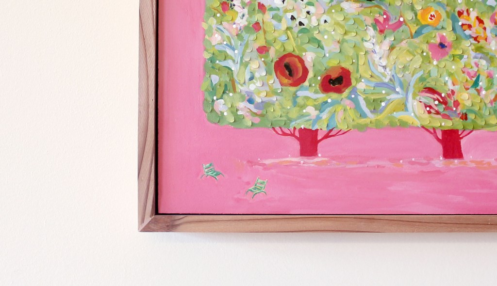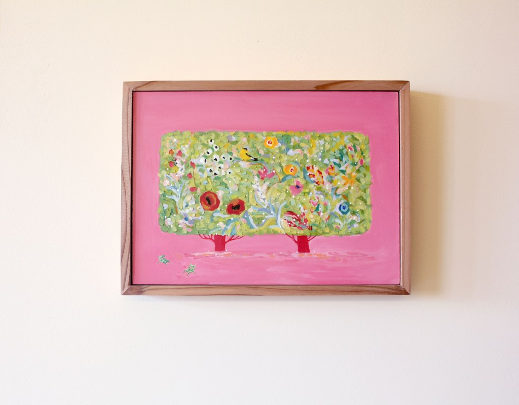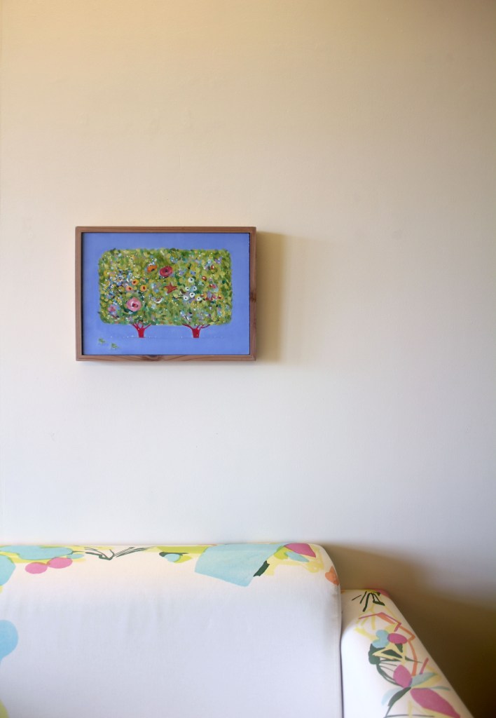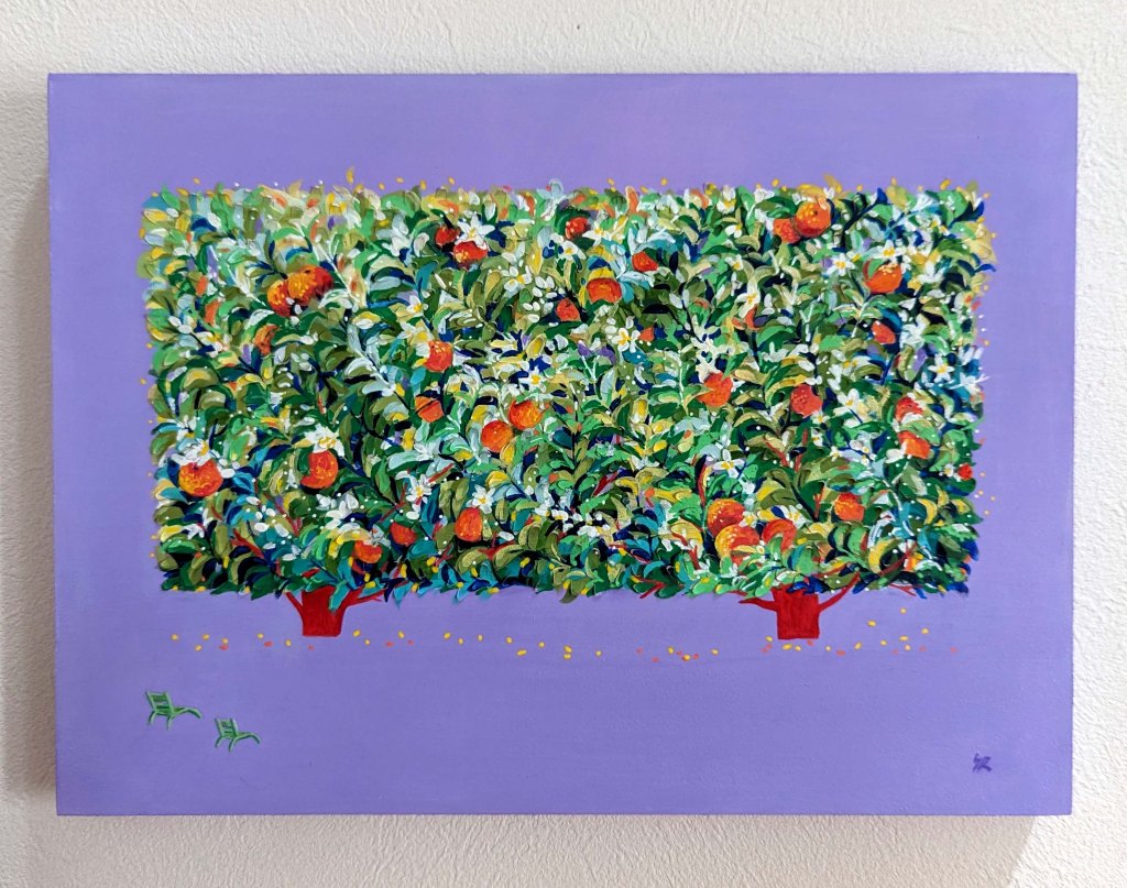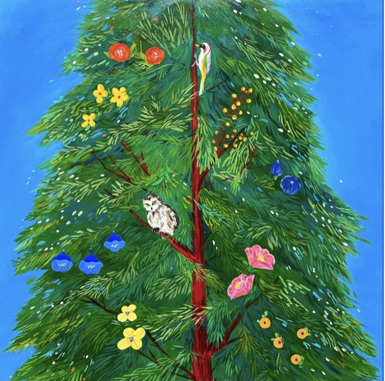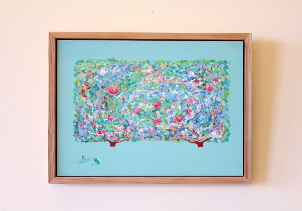 The “Tree Series” began shortly after my husband and I moved from the United States to Japan in 2016. While exploring our new home, I discovered a unique tree with two distinct trunks growing together to form a single canopy. This reminded me of how my husband and I, once separate individuals, intertwined our lives to become one. I later learned these trees are called “Yeonri Ji” (連理枝)