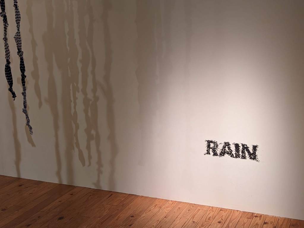 The “Rain” space is filled with a piece that repurposed recycled pieces of waste clothing that were generated during the clothes-making process.